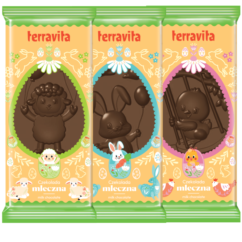Mleczna czekolada w formie płaskorzeźby Wielkanocnej. Aż 14 różnych wzorów w 3 różnych obwolutach!